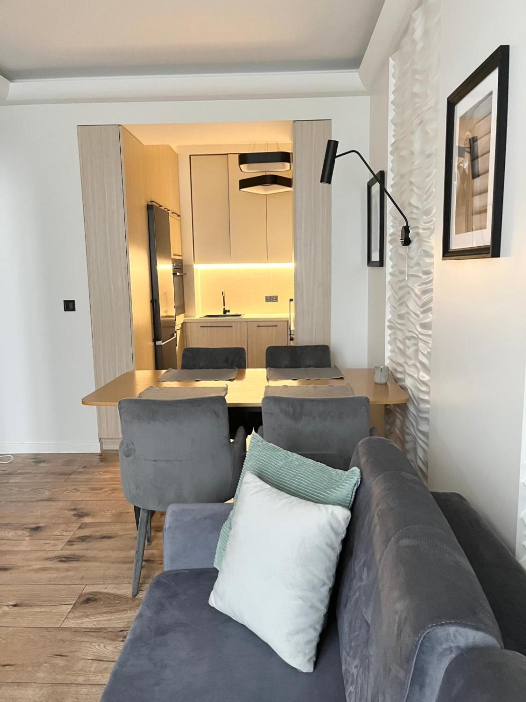 W apartamencie zapewniono sypialnię (1), salon oraz kuchnię z pełnym wyposażeniem, w tym lodówką i zmywarką. W apartamencie zapewniono ręczniki i pościel.