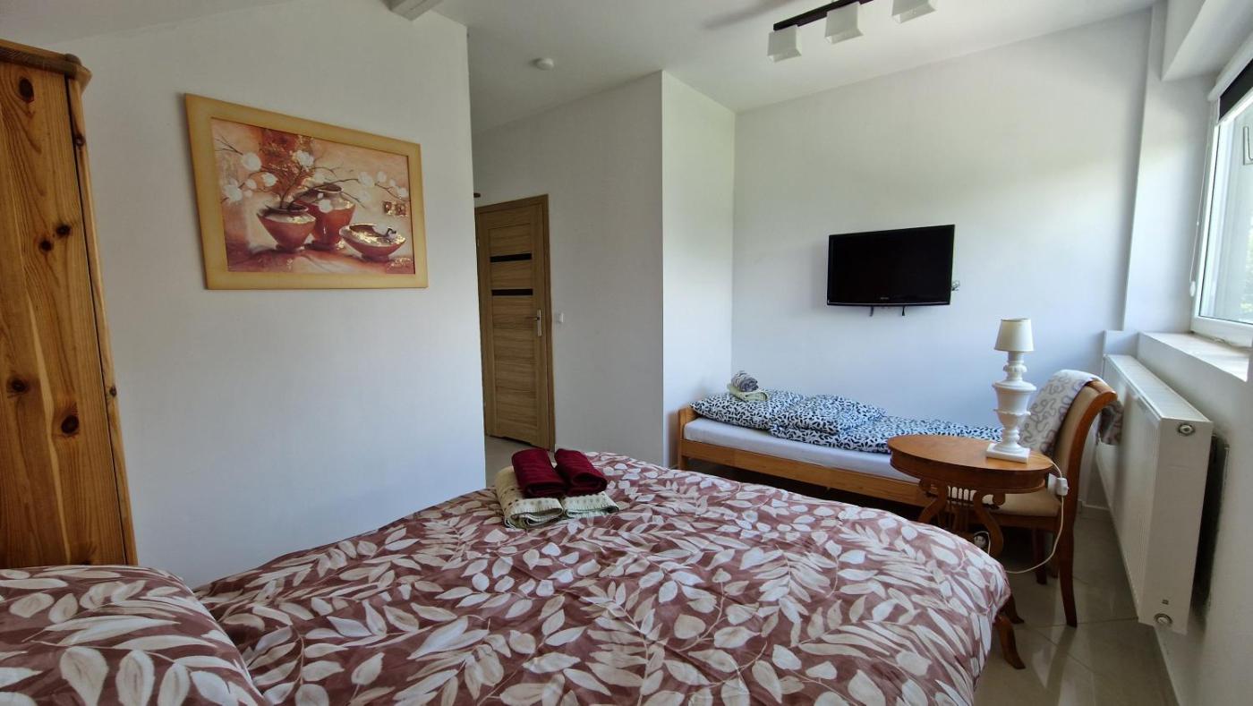 Pokój Trzyosobowy z prywatną łazienką. The triple room provides a wardrobe, a tiled floor, as well as a private bathroom featuring a shower and a hairdryer. This triple room offers heating and a flat-screen TV. The unit offers 2 beds. Pokój Trzyosobowy - 3 osobowy. Powierzchnia pokoju ok.: 25 mkw. ;