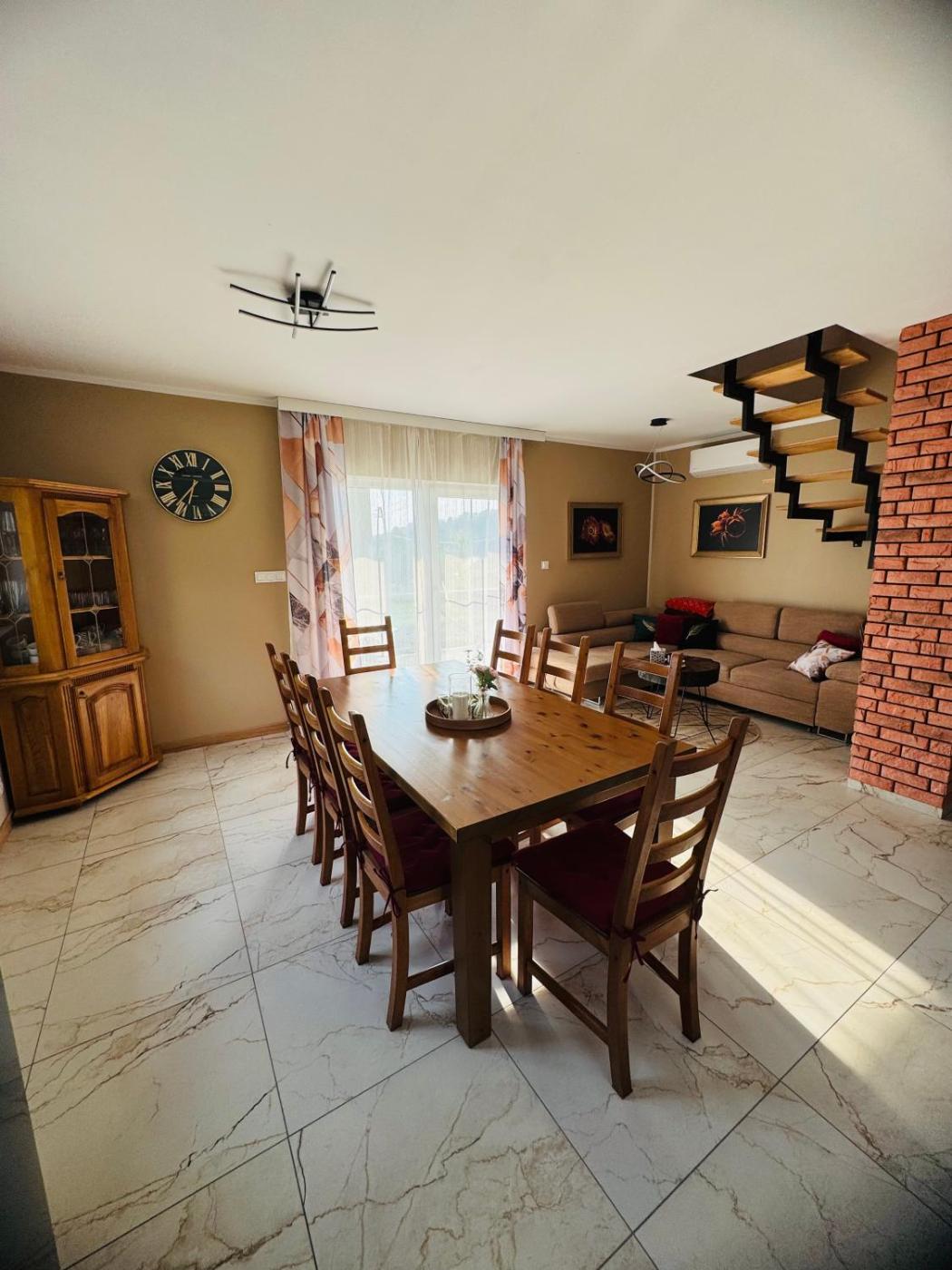 Dom z 3 sypialniami. This air-conditioned holiday home is comprised of 1 living room, 3 separate bedrooms and 2 bathrooms with a bath or a shower. Guests can make meals in the kitchen that is fitted with a stovetop, a refrigerator, a dishwasher and kitchenware. Featuring a terrace with garden views, this holiday home also offers a tea and coffee maker and a flat-screen TV. The unit offers 8 beds. Dom wakacyjny - 9 osobowy. Powierzchnia pokoju ok.: 70 mkw.