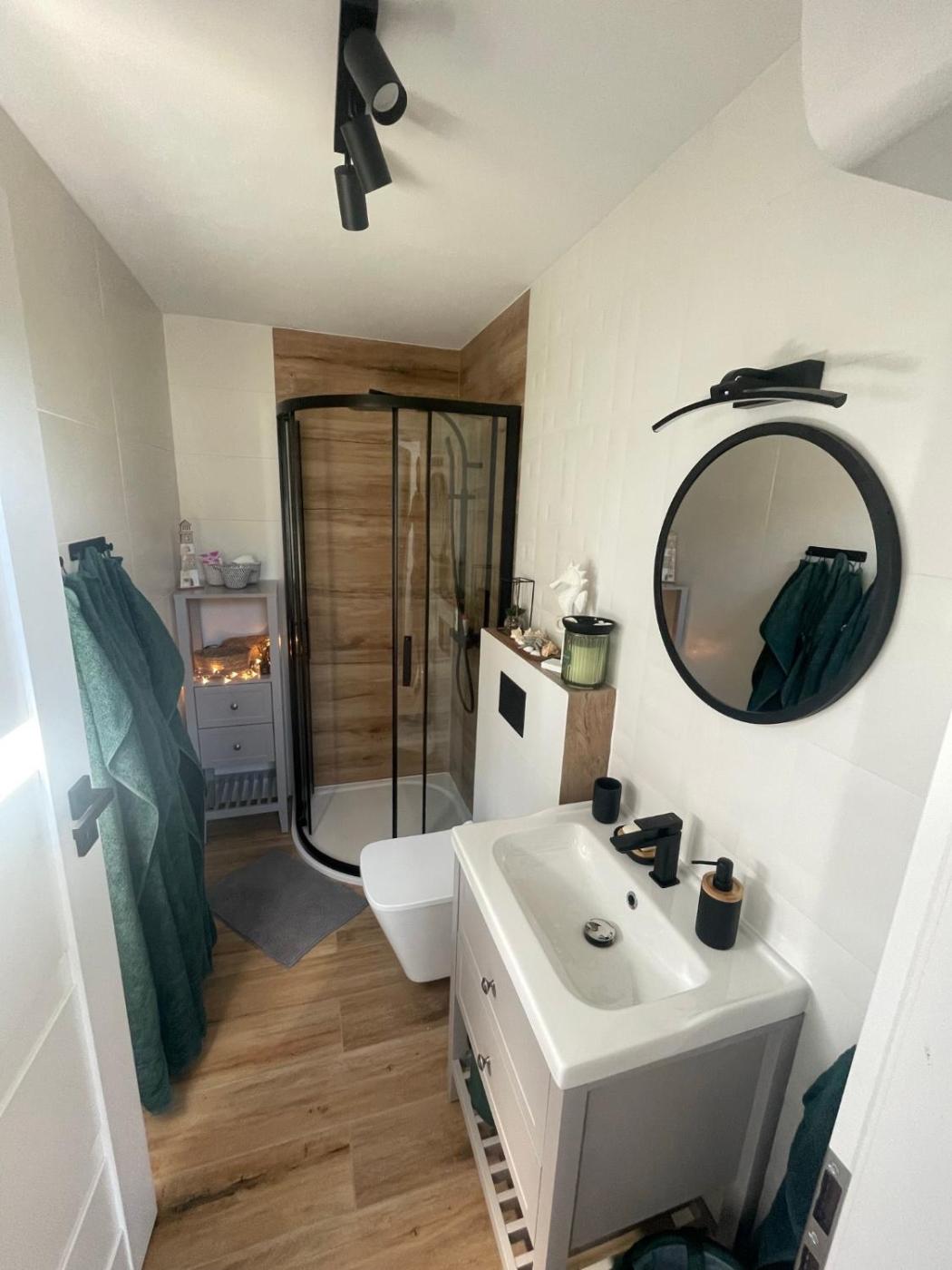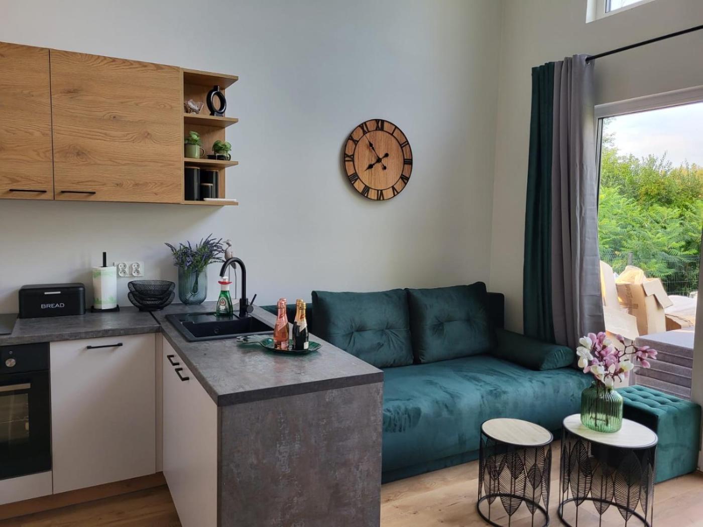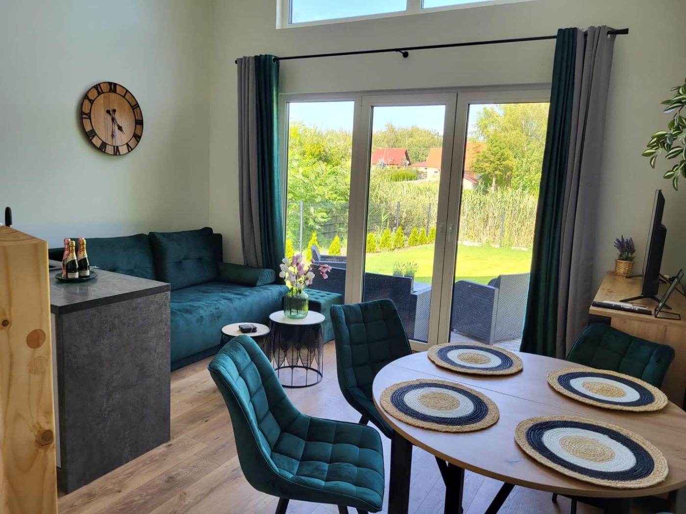 Dom z 2 sypialniami. Guests can make meals in the kitchen that features a stovetop, a refrigerator, a dishwasher and kitchenware. The air-conditioned holiday home features a flat-screen TV, a private entrance, a dining area, an electric kettle as well as garden views. The unit has 3 beds. Dom wakacyjny - 6 osobowy. Powierzchnia pokoju ok.: 45 mkw.