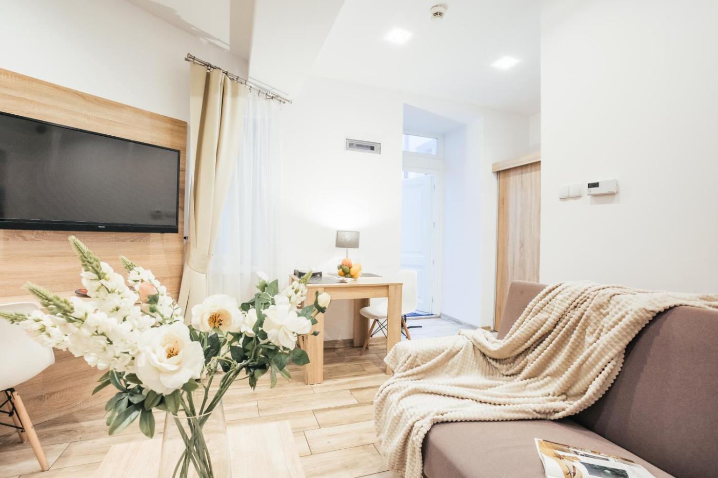 Apartament typu Deluxe Junior Suite. Featuring a private entrance, this suite comprises 1 living room, 1 separate bedroom and 1 bathroom with a walk-in shower and a hairdryer. The well-fitted kitchen features a stovetop, a refrigerator, kitchenware and a toaster. The suite provides a flat-screen TV, a washing machine, soundproof walls, a tea and coffee maker as well as city views. The unit offers 2 beds. Apartament typu Suite - 4 osobowy. Powierzchnia pokoju ok.: 42 mkw. ;