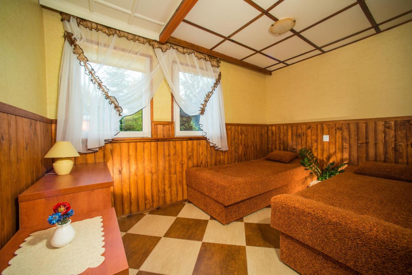 Bungalow Rodzinny. The kitchenette features a refrigerator, kitchenware and a microwave. The spacious family room features a private entrance, a tea and coffee maker, a terrace with garden views as well as a private bathroom boasting a shower. The unit has 5 beds. Rodzinny - 5 osobowy. Powierzchnia pokoju ok.: 80 mkw. ;