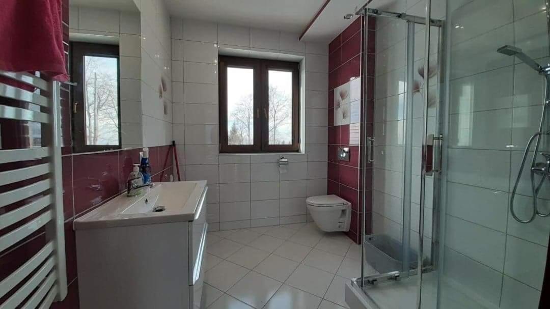 Domek. Guests will have a special experience as the chalet features a fireplace. Featuring a private entrance, this spacious chalet also consists of 1 living room, 6 separate bedrooms and 2 bathrooms with a shower. Guests will find a stovetop, a refrigerator, kitchenware and an oven in the well-fitted kitchen. The chalet also offers a barbecue. Boasting a terrace with garden views, this chalet also provides a washing machine and a flat-screen TV. The unit offers 7 beds. Domek - 12 osobowy. Powierzchnia pokoju ok.: 150 mkw. ;