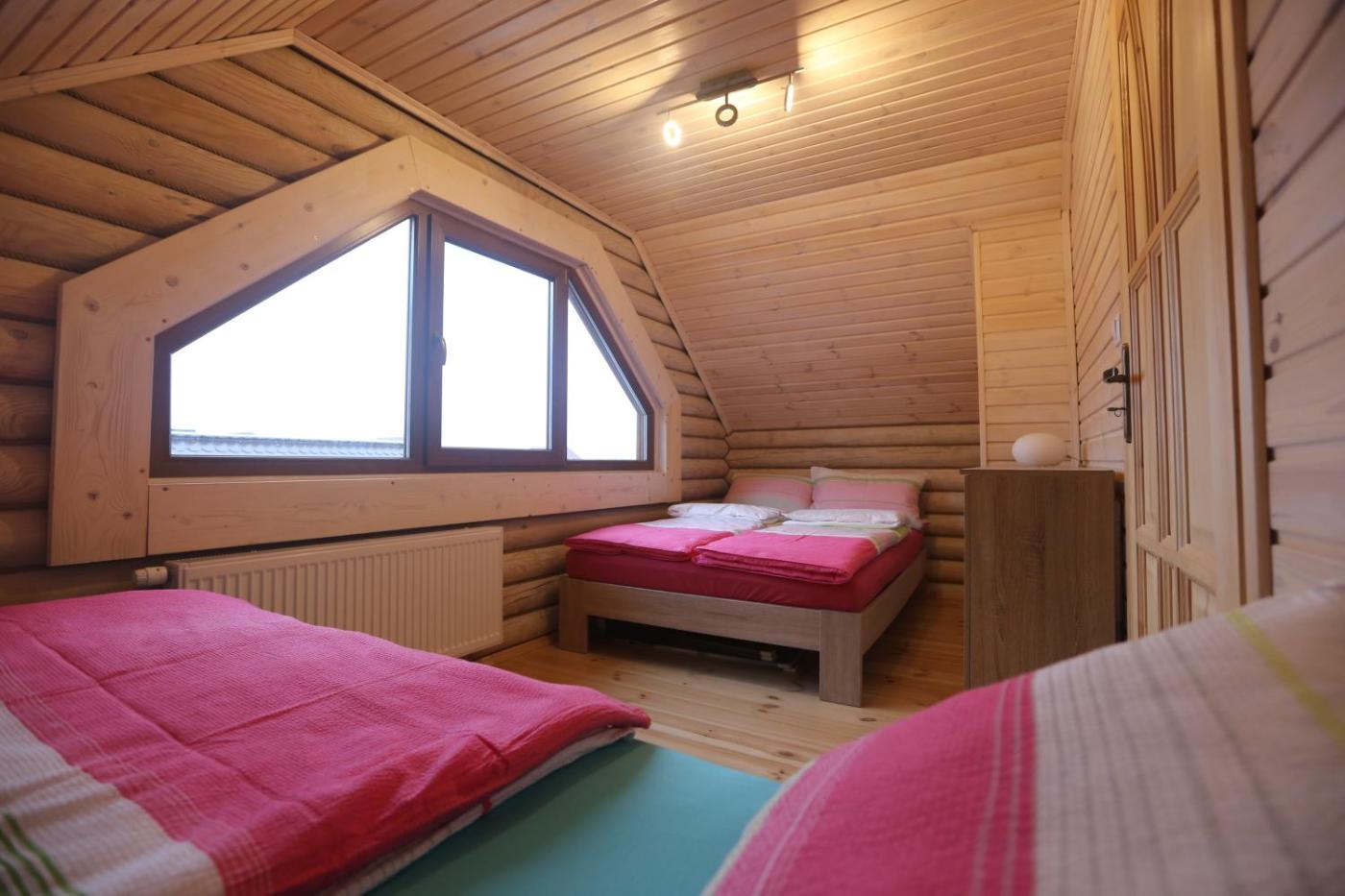 Domek z 2 sypialniami. Boasting 2 bedrooms, this chalet has 1 bathroom with a walk-in shower, a seating area and terraceyou can relax. Guests will find a stovetop, a refrigerator, kitchenware and a toaster in the fully equipped kitchenette. The chalet also comes with a barbecue. Featuring a balcony with garden views, this chalet also features a private entrance and a flat-screen TV with satellite channels. The unit offers 4 beds. Domek - 7 osobowy. Powierzchnia pokoju ok.: 60 mkw. ;