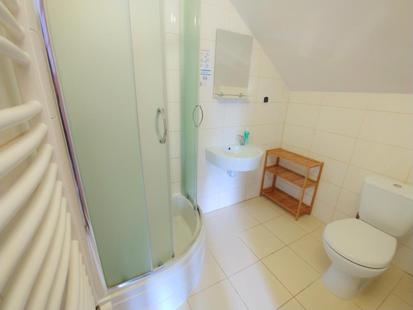 Pokój Czteroosobowy. The quadruple room includes a private bathroom equipped with a shower. The unit offers 3 beds. Pokój Czteroosobowy - 5 osobowy. Powierzchnia pokoju ok.: 14 mkw.